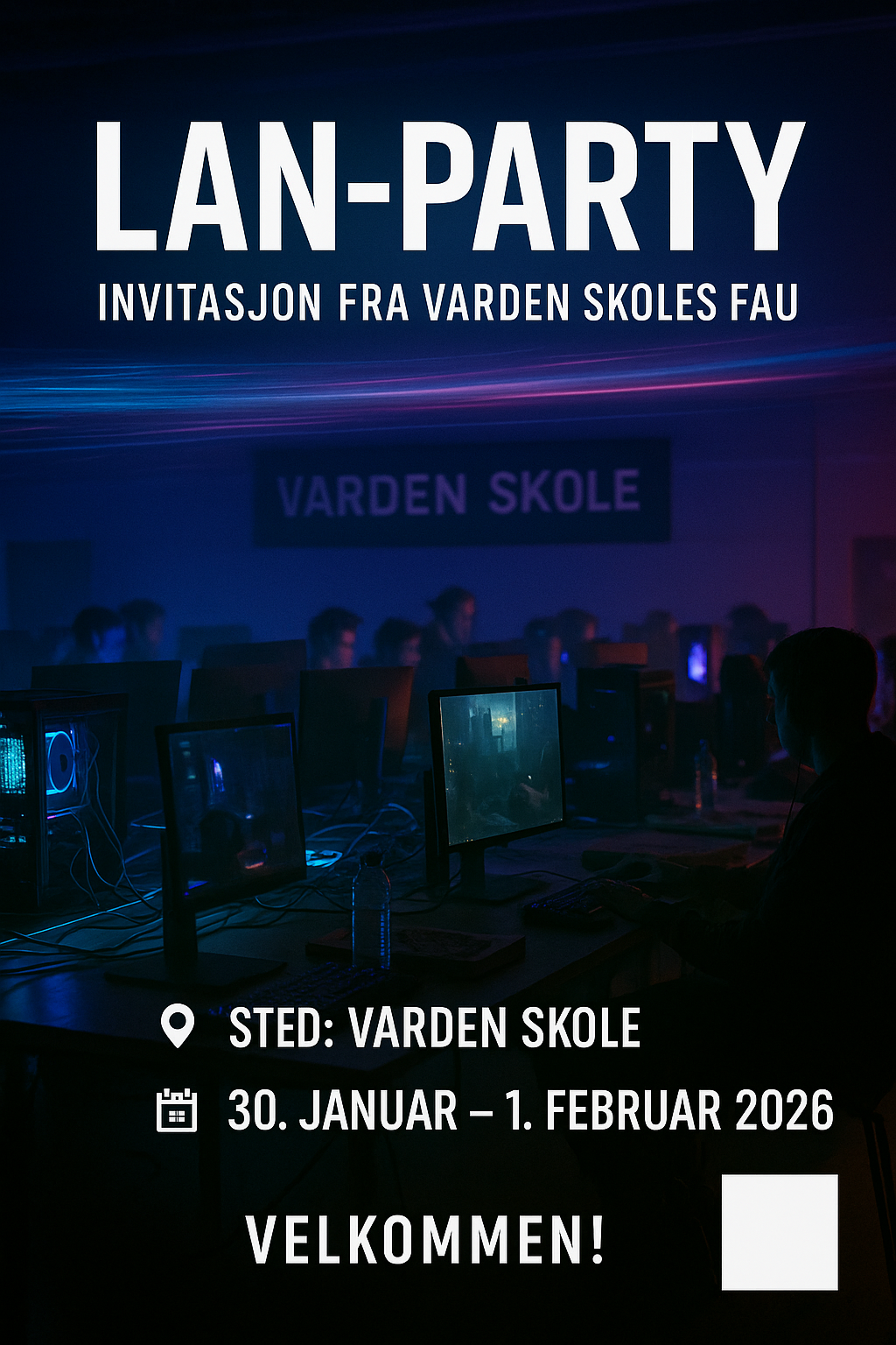 FAU inviterer til LAN-party på Varden skole fra 30. januar til 1. februar 2026.