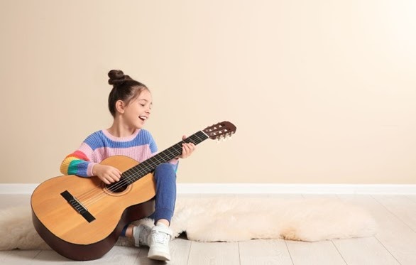Vi anbefaler å kjøpe et instrument som passer til ditt barn. Når det gjelder gitarer så er voksen gitarer alt for store for barn. Det finnes gitarer i ½, ¾ og 4/4 størrelser. Kjøp nylonstrengsgitar eller elektrisk gitar og unngå stålstreng akustisk gitar.